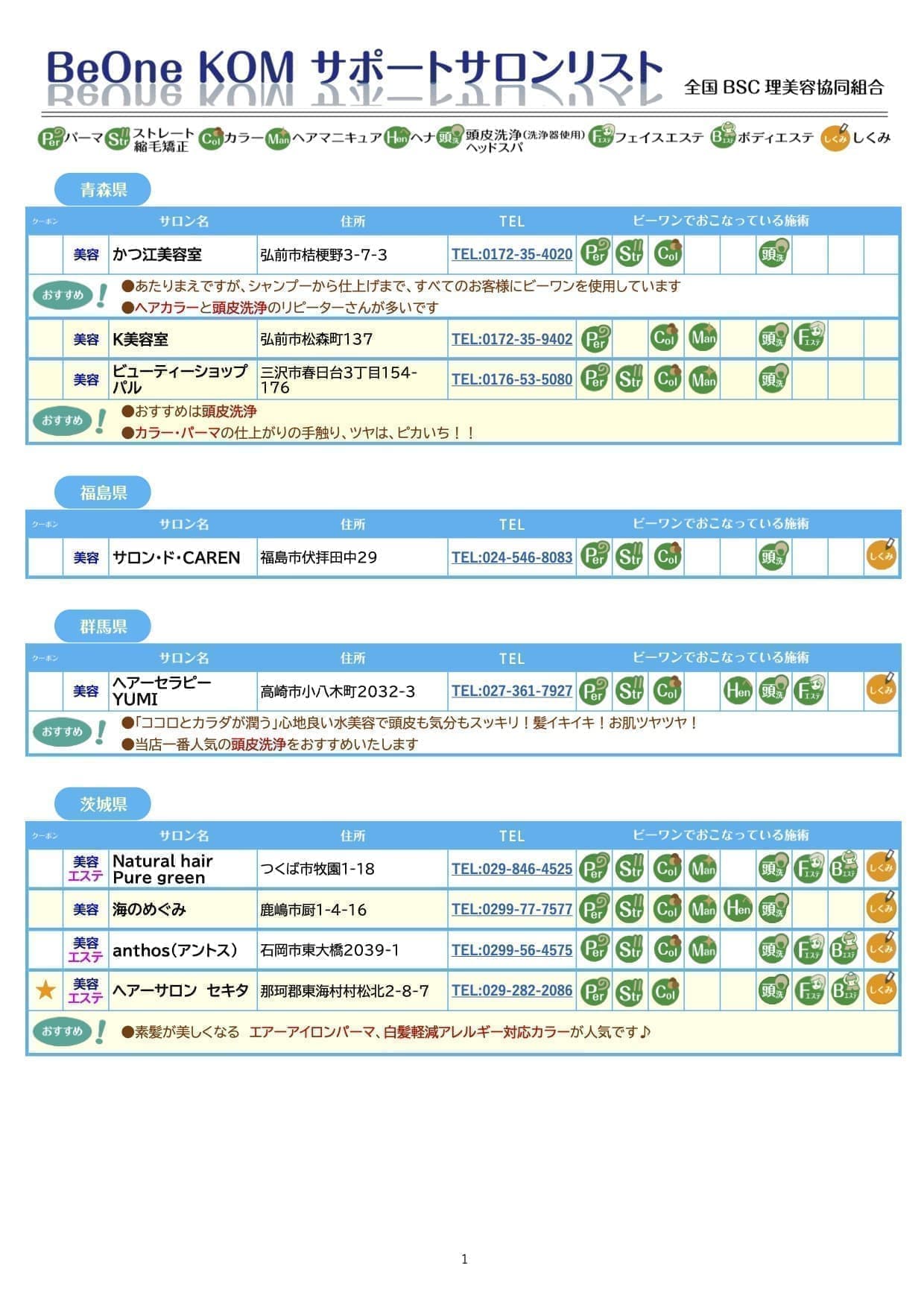 BeOneKOMサポートサロン検索はこちらから>>BSCサロン検索