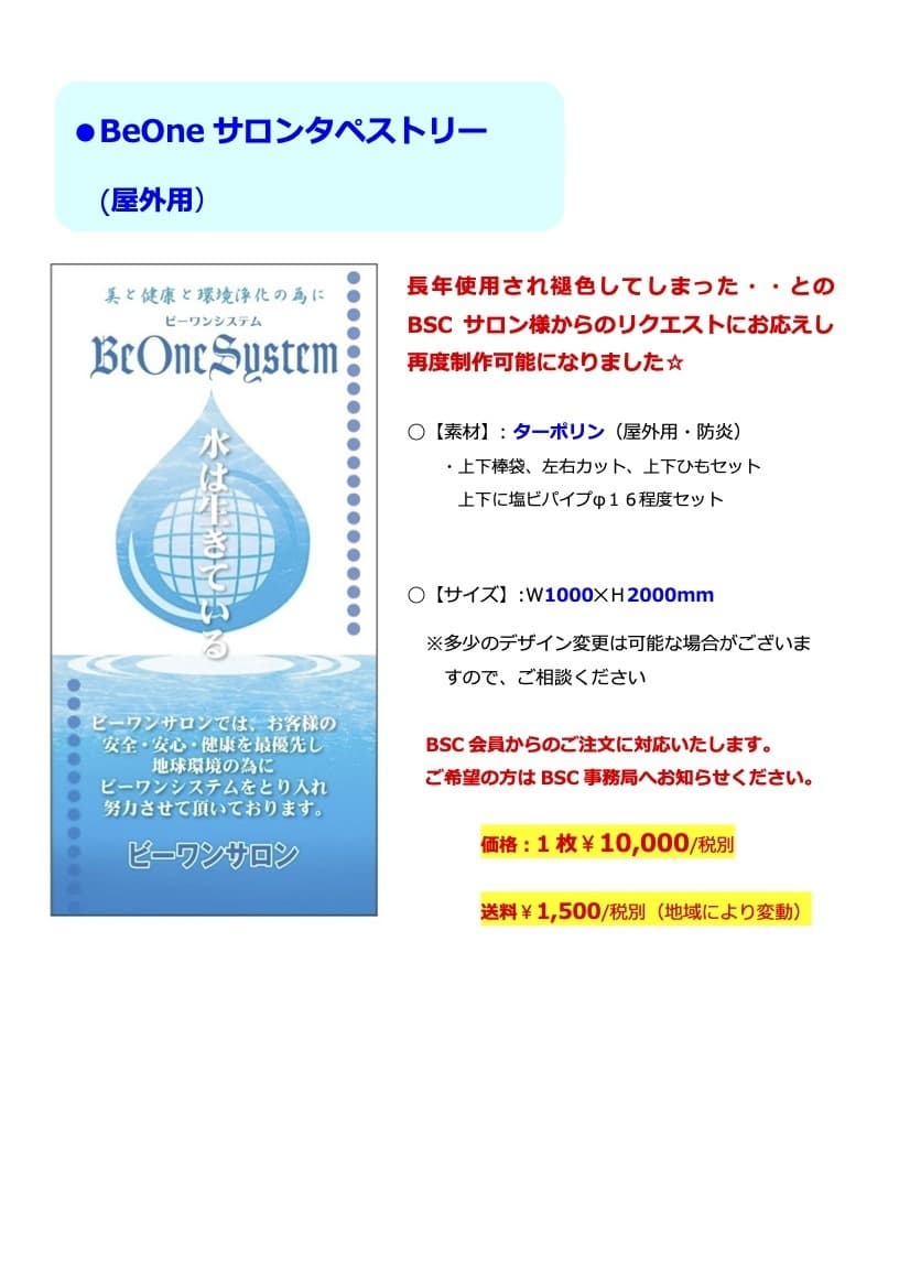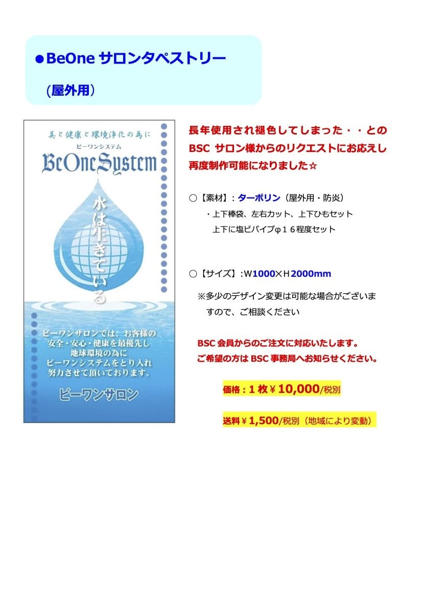*代金は別途BSCよりご請求